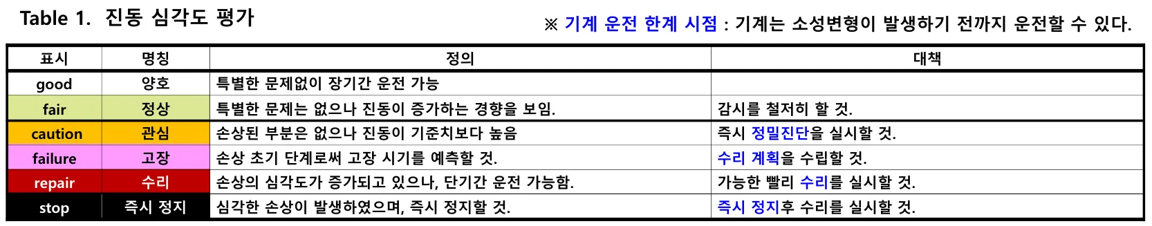 - 소성변형의 원인이 되는 부품(베어링 등)의 손상은 낮은 기준으로 관리해야만 한다.