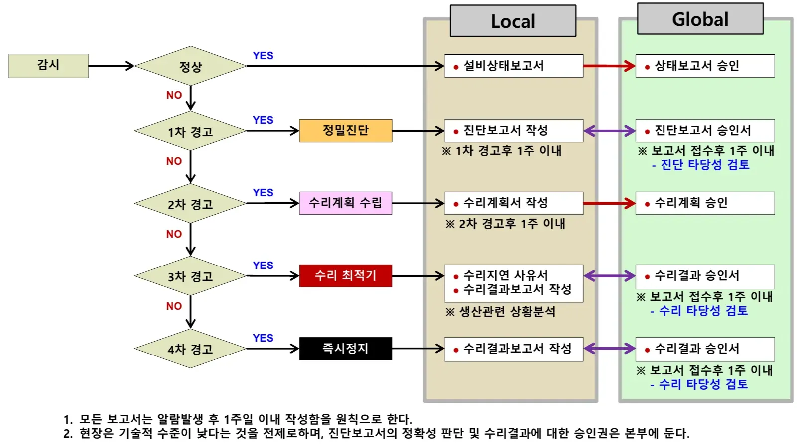 - 고장 원인 정밀분석에 의한 경고 수준 결정 (예)
