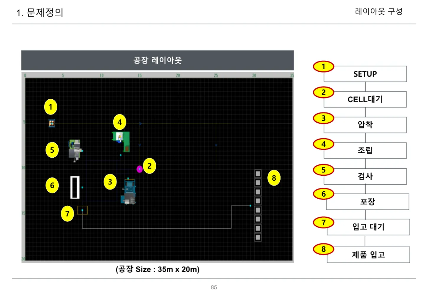 그러나 이것은 셀 생산 방식에 있어 ‘하나의 셀’의 범위를 벗어나는 것으로, 셀 생산보다는 라인 생산 방식에 더 가깝게 된다. 그러므로 이번 문제에서는 이론 최적값은 참고하되, 셀 생산 방식의 범주 내에서 개선할 수 있도록 하였다.