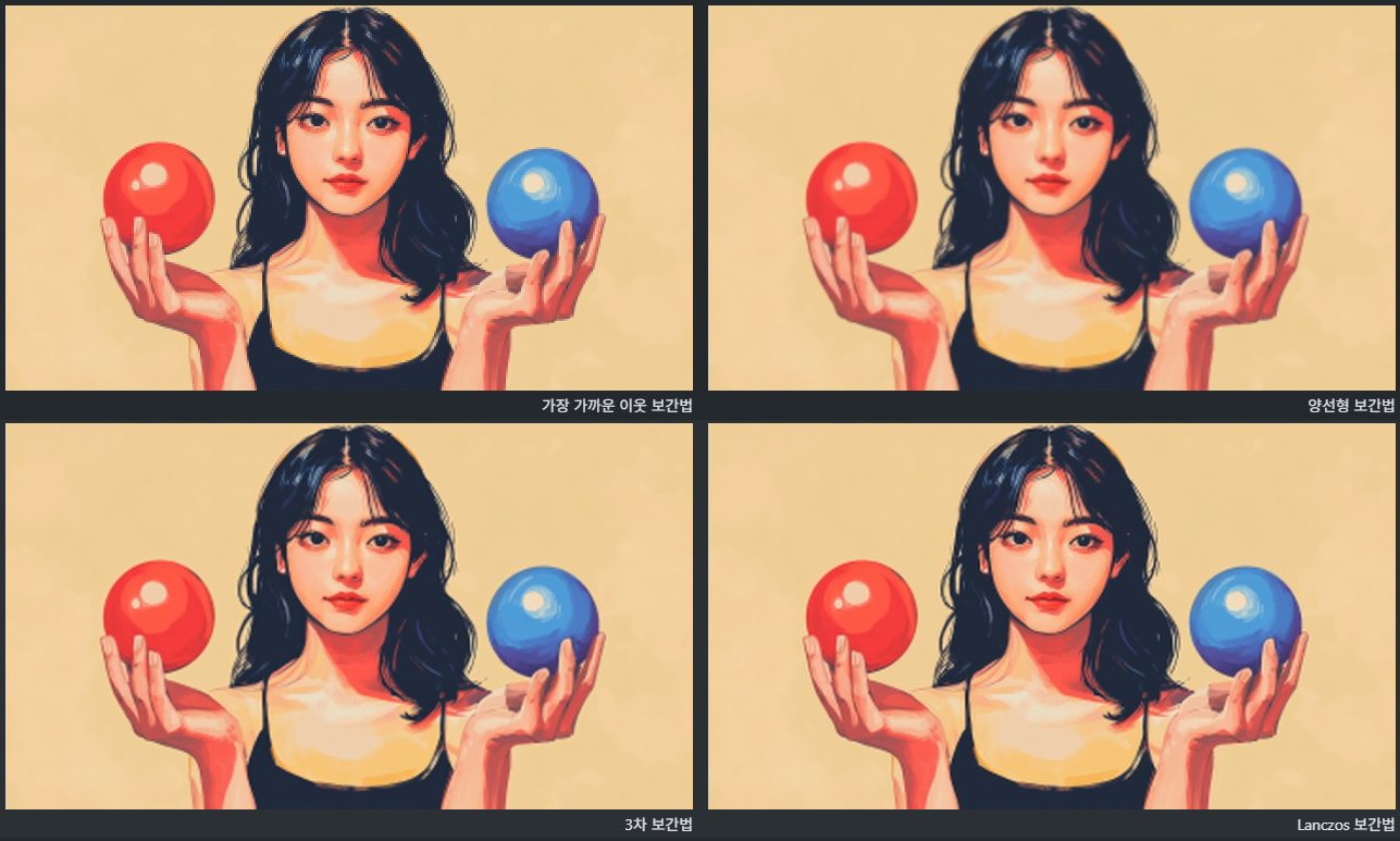 미묘,, 하게 Lanczos 보간법으로 갈수록 화질이 더 나아보임