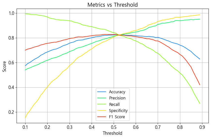 문턱값을 바꿔가면서 지표 계산 시각화